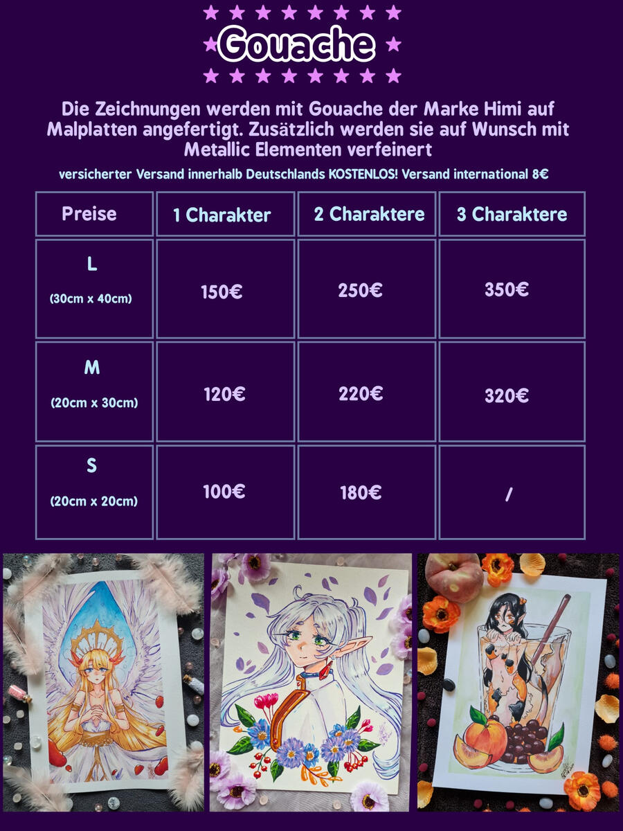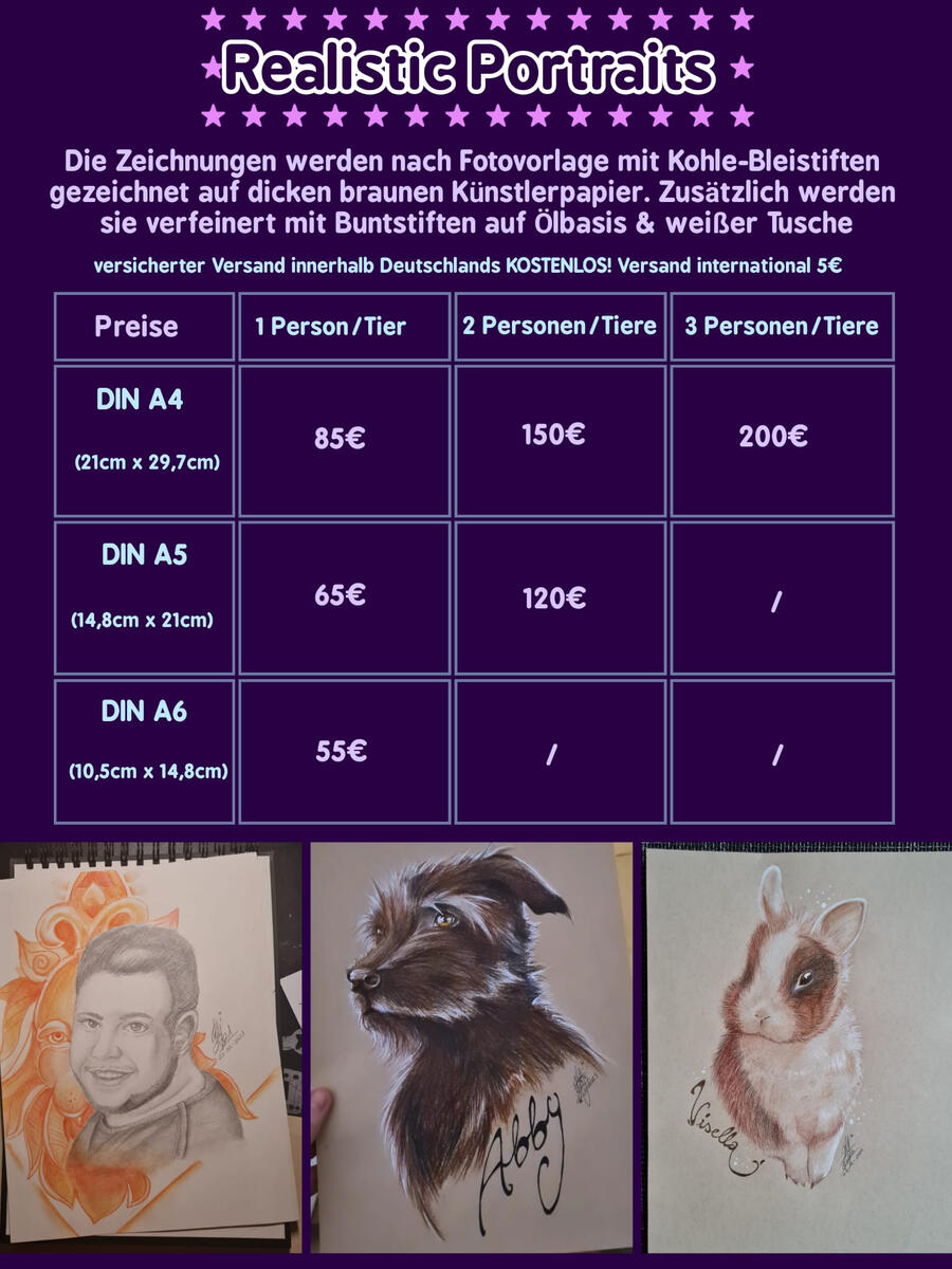 Für traditionelle Zeichnungen gelten folgende Ausnahmen : Deine Zeichnung kam beschädigt an oder ist beim Versand verloren gegangen. Für eine Rückerstattung benötige ich ein Bild von der beschädigten Zeichnung. Danach kannst du eine Rückerstattung von 20% für kleinere Schäden oder 40% für größere Schäden erhalten. Für die Rückerstattung im Falle eines Verlust wird das individuelle mit dem Kunden besprochen und dann weitere Schritte eingeleitet.