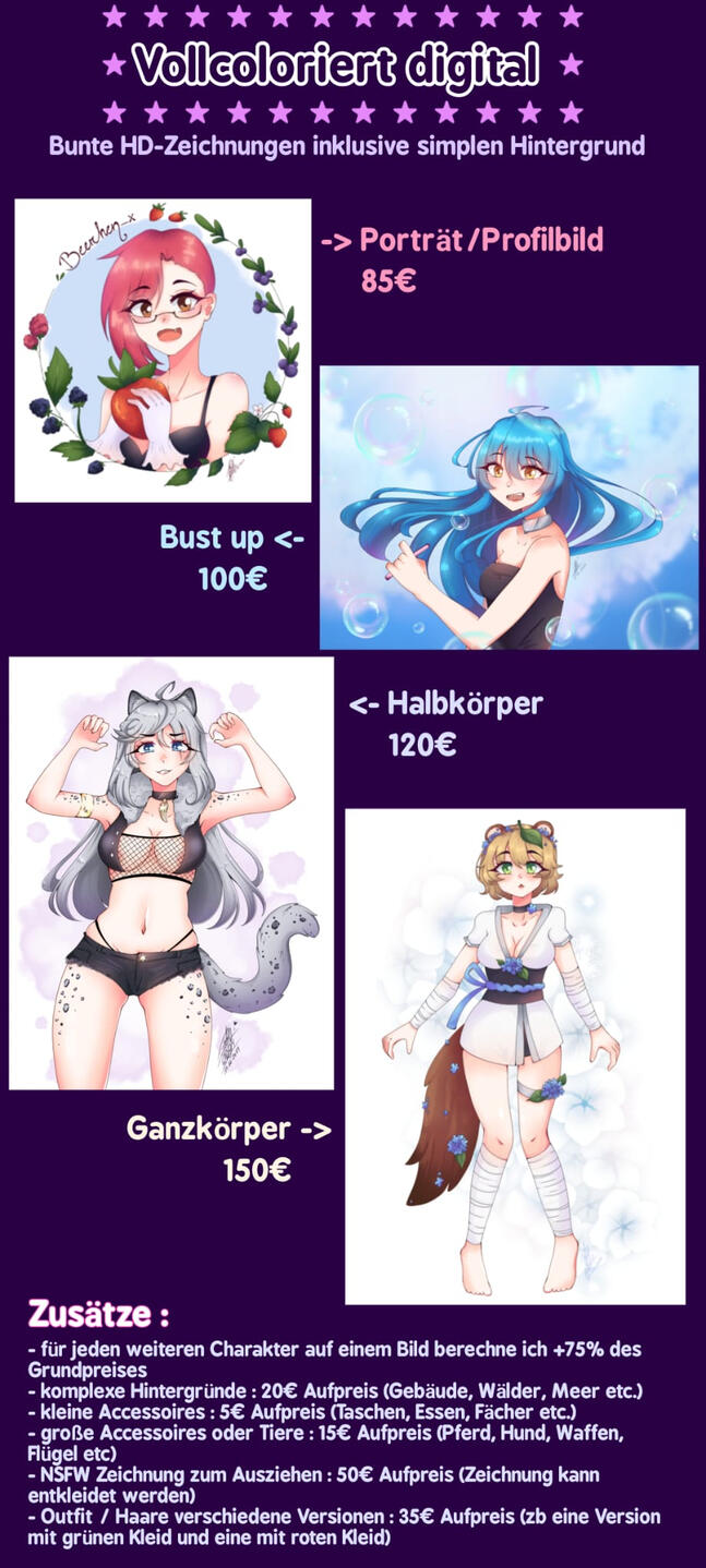 Wenn du meine Zeichnungen kommerziell nutzt, gibt es folgende Bedingungen. (bezieht sich auf den Druck von Merchandise, Verkauf als NFT etc. ) ich berechne dir das dreifache des Grundpreises. Danach bekommst du das Recht, die Zeichnung(en) kommerziell zu nutzen und musst mir keine Abgaben pro Verkauf geben. Auch musst du mir keinen Credit geben.